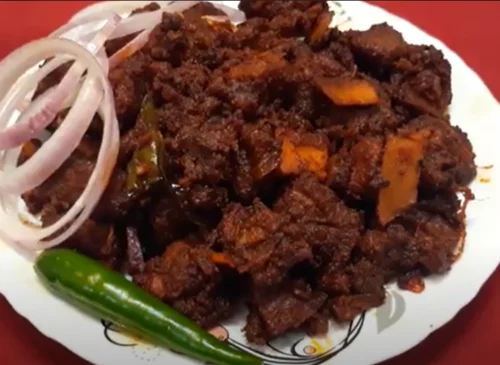 Mutton Pieces cooked and roasted with pepper and spices.